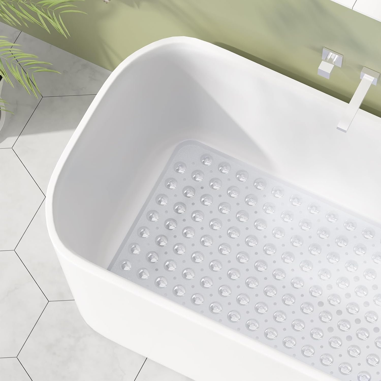 • Large bathtub mat 40 x 16 inches will cover the length of most tubs.